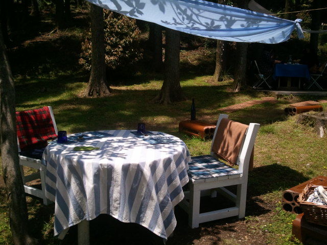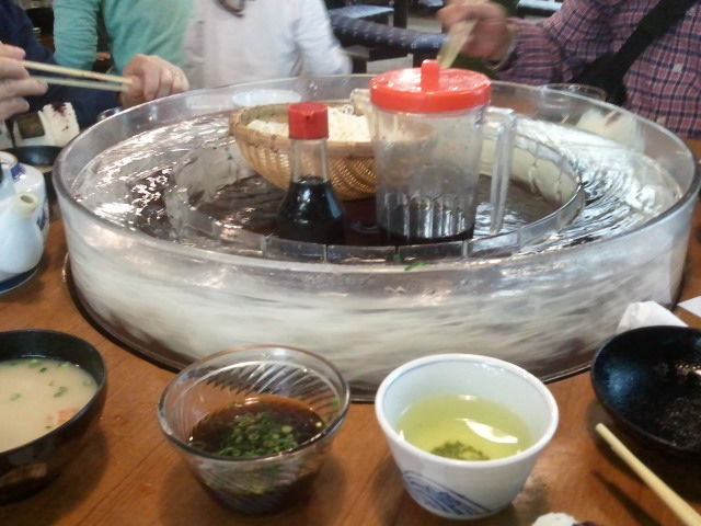 恒例のそうめん流し。待って食べたそうめんは格別!!